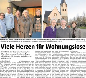 HORSTMAR. Ihr Herz für wohnungslose Menschen beweisen in diesen Tagen viele Lüner. Mit Spenden und einem Benefizkonzert.