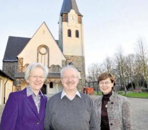 Bei der Spende an Ulrich Klink (M., Dach über dem Kopf): (v.l.) Ella Claus, Daniel Münsterberg, Marie-Luise Bolte und Pfarrerin Dr. Katrin Stückrath (Foto l.). Freuen sich auf das Benefizkonzert in der Christuskirche : (v.r.) Daniela Blome, Albert und Sabine Achilles (Foto r.).RN-Fotos (2) Rottgardt